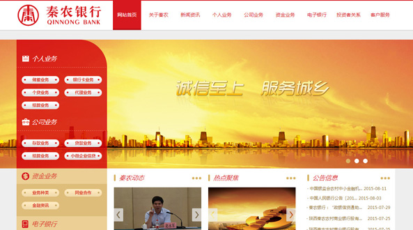 上線(xiàn)時(shí)間 :2015.08   關(guān)鍵詞:金融,嚴謹,大氣,時(shí)尚  網(wǎng)址:http://www.qinnongbank.com